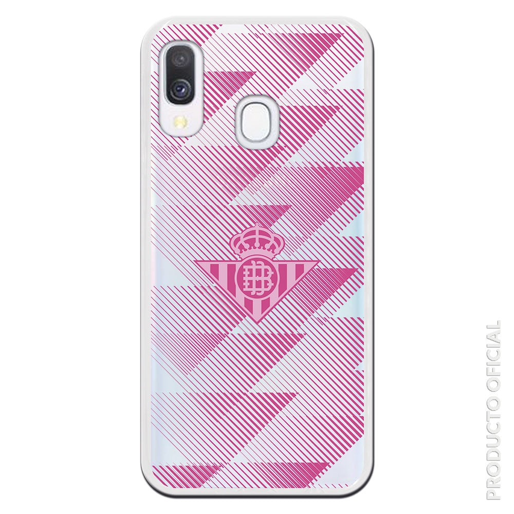 Carcasa Oficial Real Betis Balompié. Diseño aprobado por el Real Betis Balompié con un diseño de escudo rosa y un fondo geométrico de trazos rosas. La funda es de material flexible impresa con inyección de tinta. Impresa en España. Material de silicona TPU. Selecciona tu teléfono de móvil con nuestro despegable. Puedes conseguir fundas para Iphone de Betis o una Carcasa de Samsung A70 de Betis. Funda Betis A71.