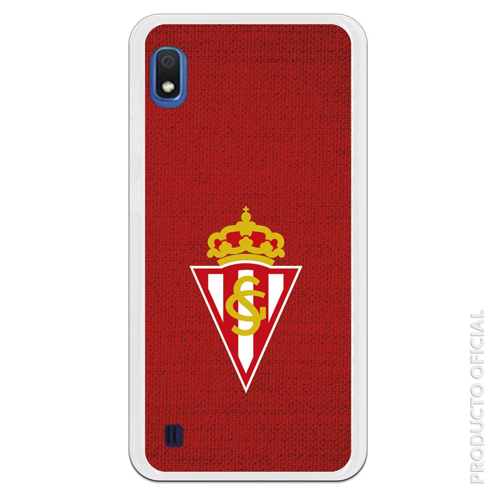Funda móvil sporting gijón encima de una textura tela impresa en silicona flexible